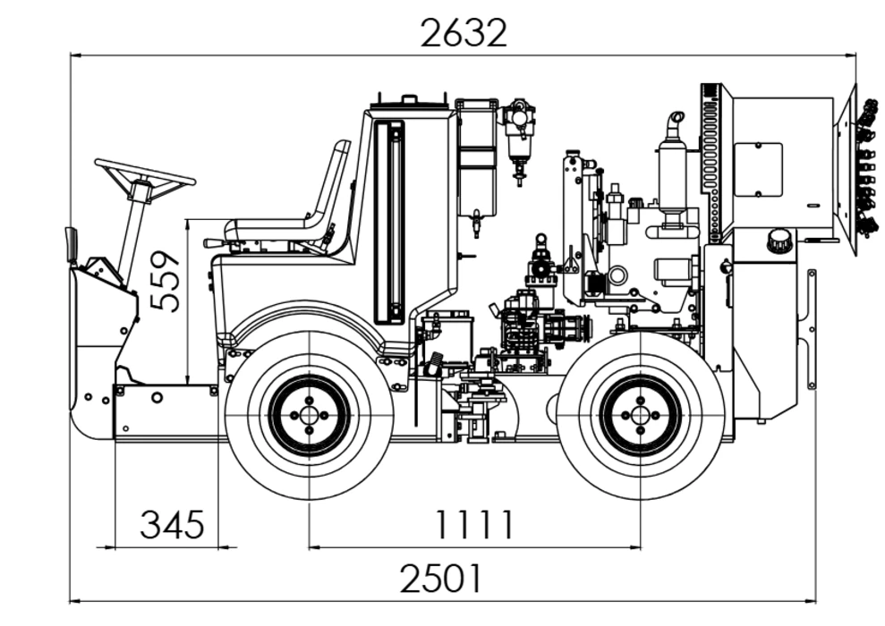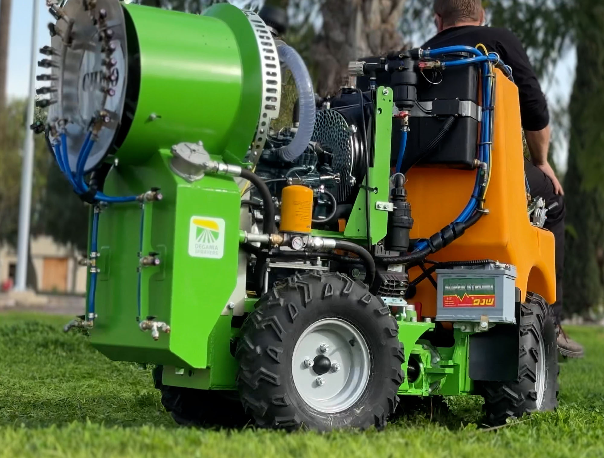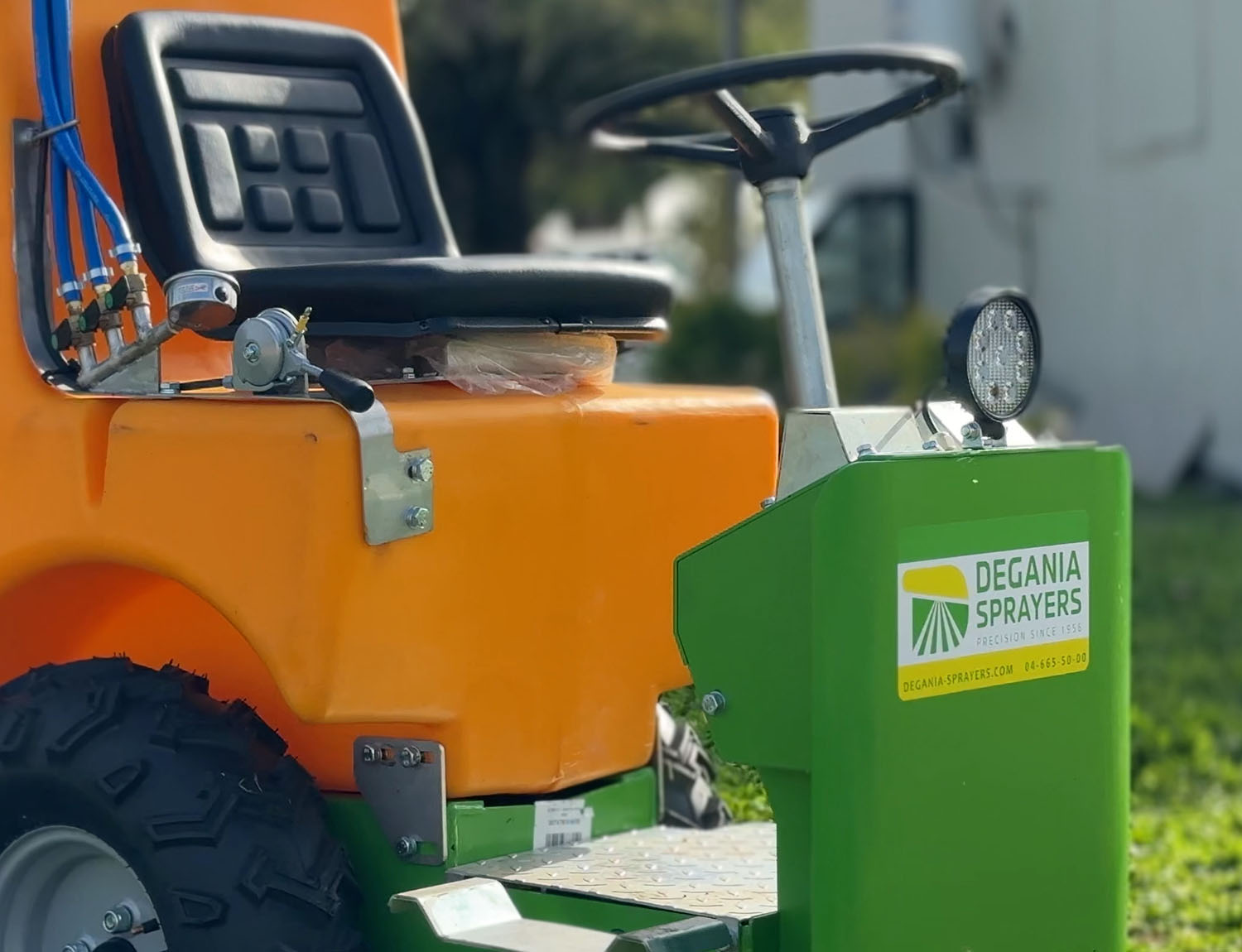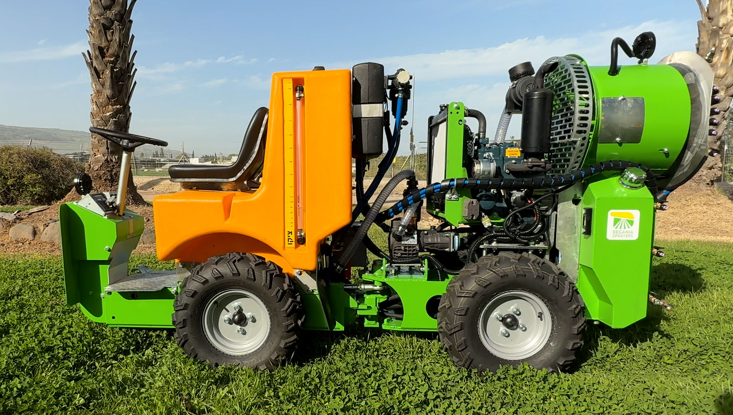 Its compact dimensions, 4×4 drive, and high spraying reach ensure efficient coverage of tall crops with excellent maneuverability.